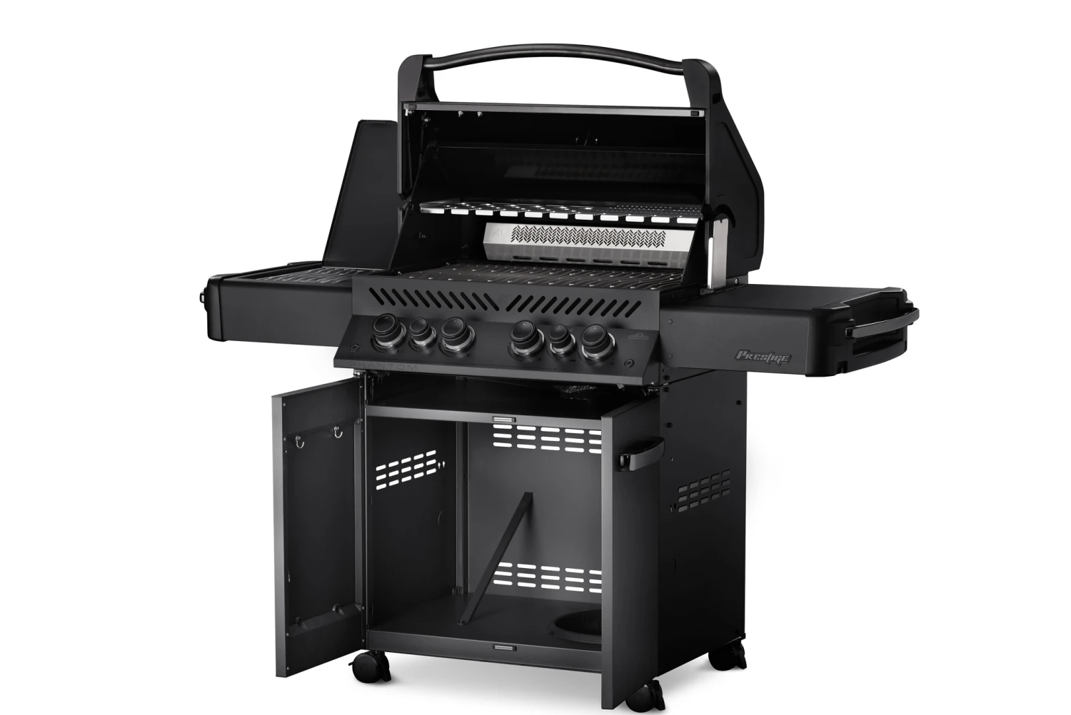 De matzwarte Phantom Prestige® 500 propaangasgrill met infrarood zij- en achterbrander biedt de volledige grillervaring. Deze gasbarbecue is volledig matzwart, van het deksel tot de vergrendelbare zwenkwielen. De stoere en aantrekkelijke Phantom heeft alles wat u voor een echte buitenkeuken nodig heeft. De vernieuwde iconische WAVE™-grillroosters van gegoten RVS en het multifunctionele grillrek zijn ideaal voor het bereiden van fantastische voorgerechten en vullen de toch al ongelooflijke Prestige® 500 gasgrill perfect aan. Met vier hoofdbranders, een achterbrander en infrarode schroeiplaat kan deze barbecue gerechten bereiden door middel van diverse unieke grilltechnieken. De RVS-warmteverdelers bieden extra oppervlak voor het verdampen van druipvet om deze luxe grill schoon te houden en opflakkeringen te voorkomen. De verlichte matzwarte knoppen zijn voorzien van SafetyGlow, waardoor het blauwe licht in de knoppen rood wordt als de branders aanstaan. De Phantom Prestige® 500 gasgrill is meer dan alleen een look. Het is een manier van leven.