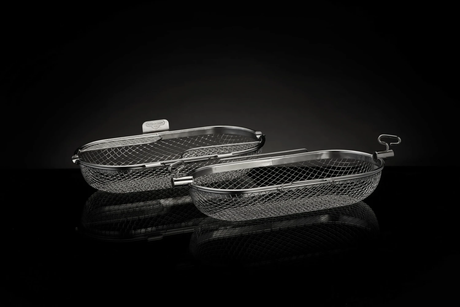 Fijnmazige grillmand, perfect voor de bereiding van kleine, fijngesneden gerechten zoals friet, zeevruchten, pinda’s, noten, bonen en groenten. De roterende beweging zorgt ervoor dat voedsel en groenten allemaal volledig gaar zijn.