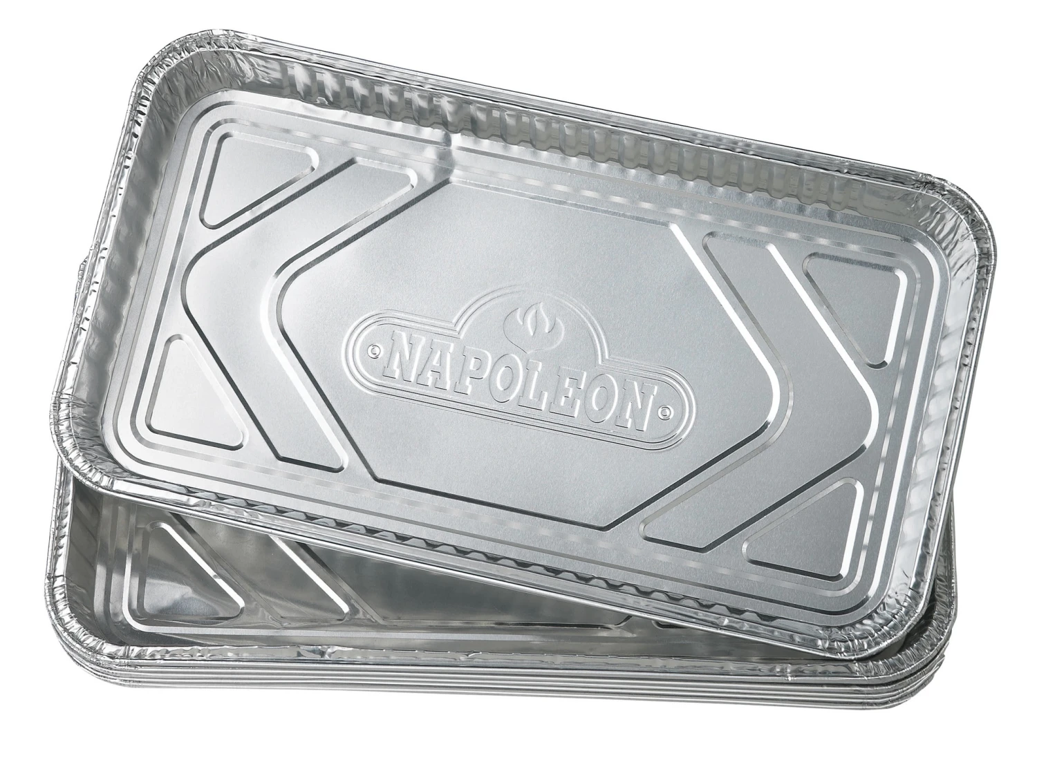 De Aluminium lekbakken zijn speciaal gemaakt voor de Napoleon gas barbecues. Ze zijn hittebestendig en worden per 5 stuks geleverd. Met een wegwerp lekbak kan je een heleboel onderhoud en schoonmaakwerk besparen. Je legt ze in de lekbak van de gasbarbecue voor het gemakkelijk en schoon afvoeren van vet. Na het barbecueën gooi je de hittebestendige wegwerp aluminium lekbakken gewoon weg om al het gelekte vet uit uw gasbarbecue te verwijderen en plaats simpel weer een nieuwe. Hiermee hou jij jouw gasbarbecue schoon en geur vrij.