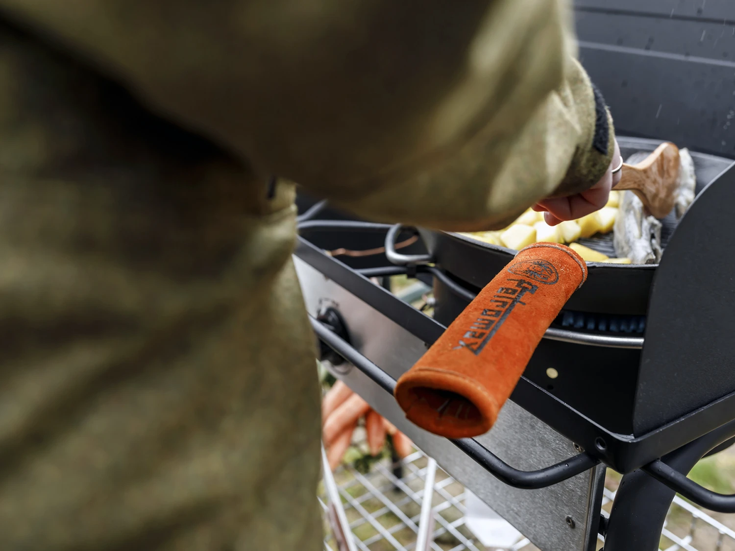 De Aramide Skillet steelhoes is speciaal ontworpen als een mouw die je over de handgreep schuift. Het biedt een goede isolatie en grip, waardoor je de pan gemakkelijk kunt vasthouden en verplaatsen zonder je handen te verbranden.