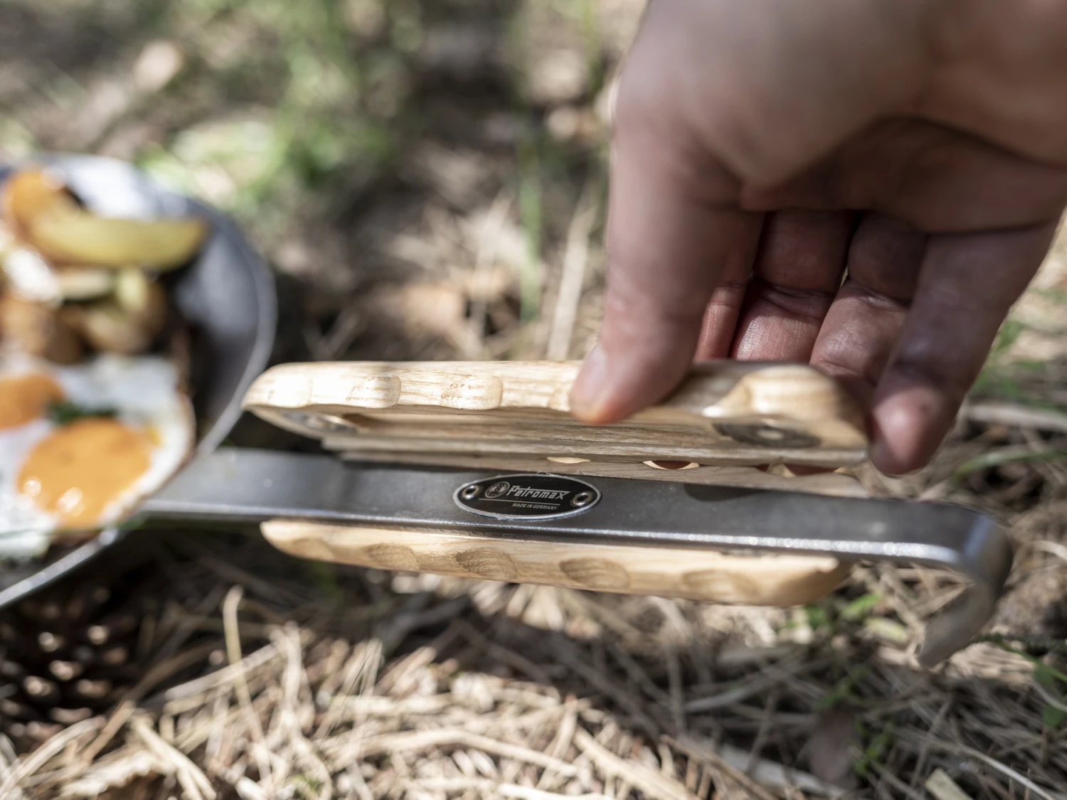 Een veilige manier om vlees, vis en groenten te bereiden. Welke van je Petromax gesmede pannen je ook gebruikt, de houten handgreep is ontworpen voor elke maat.