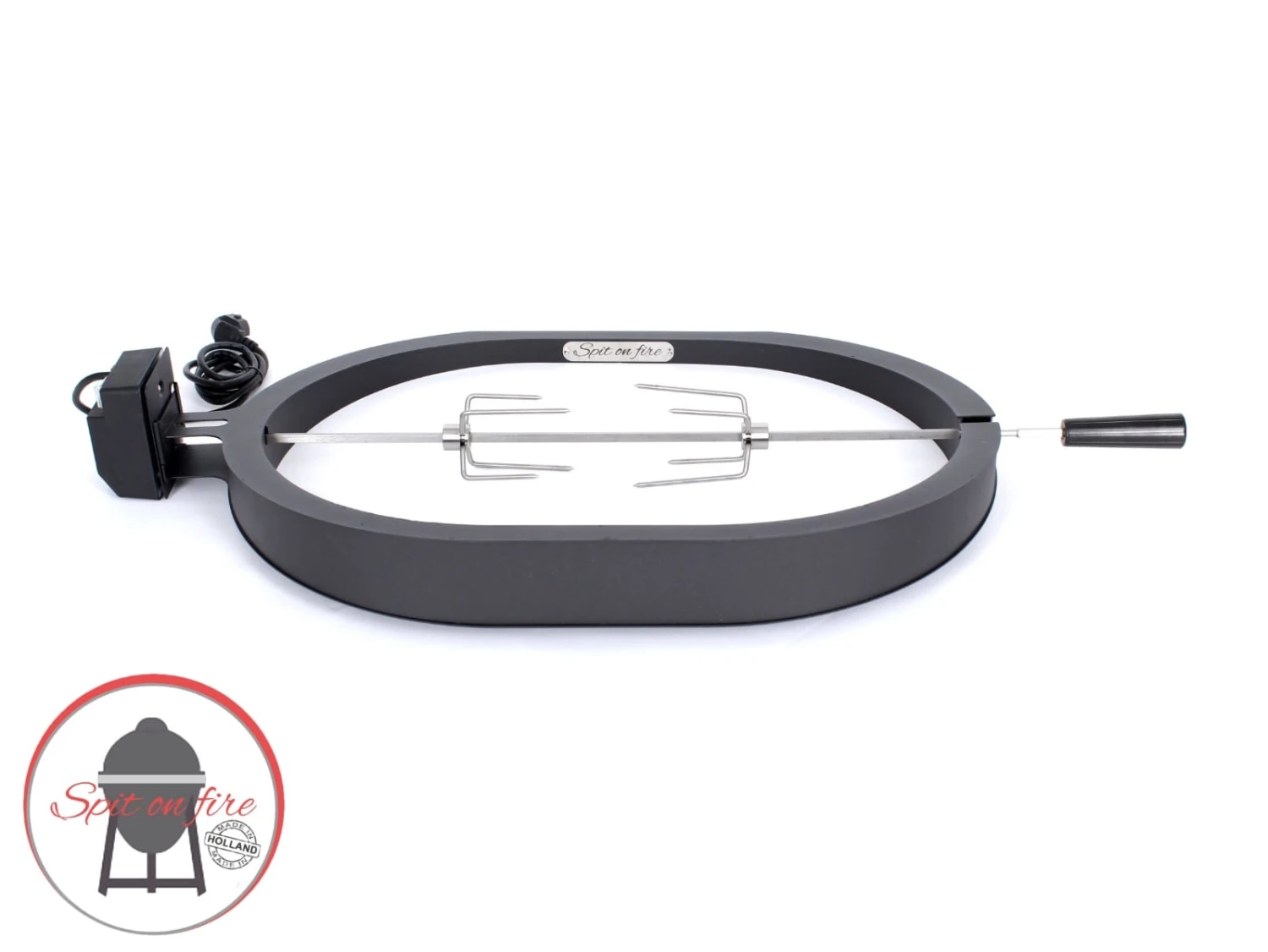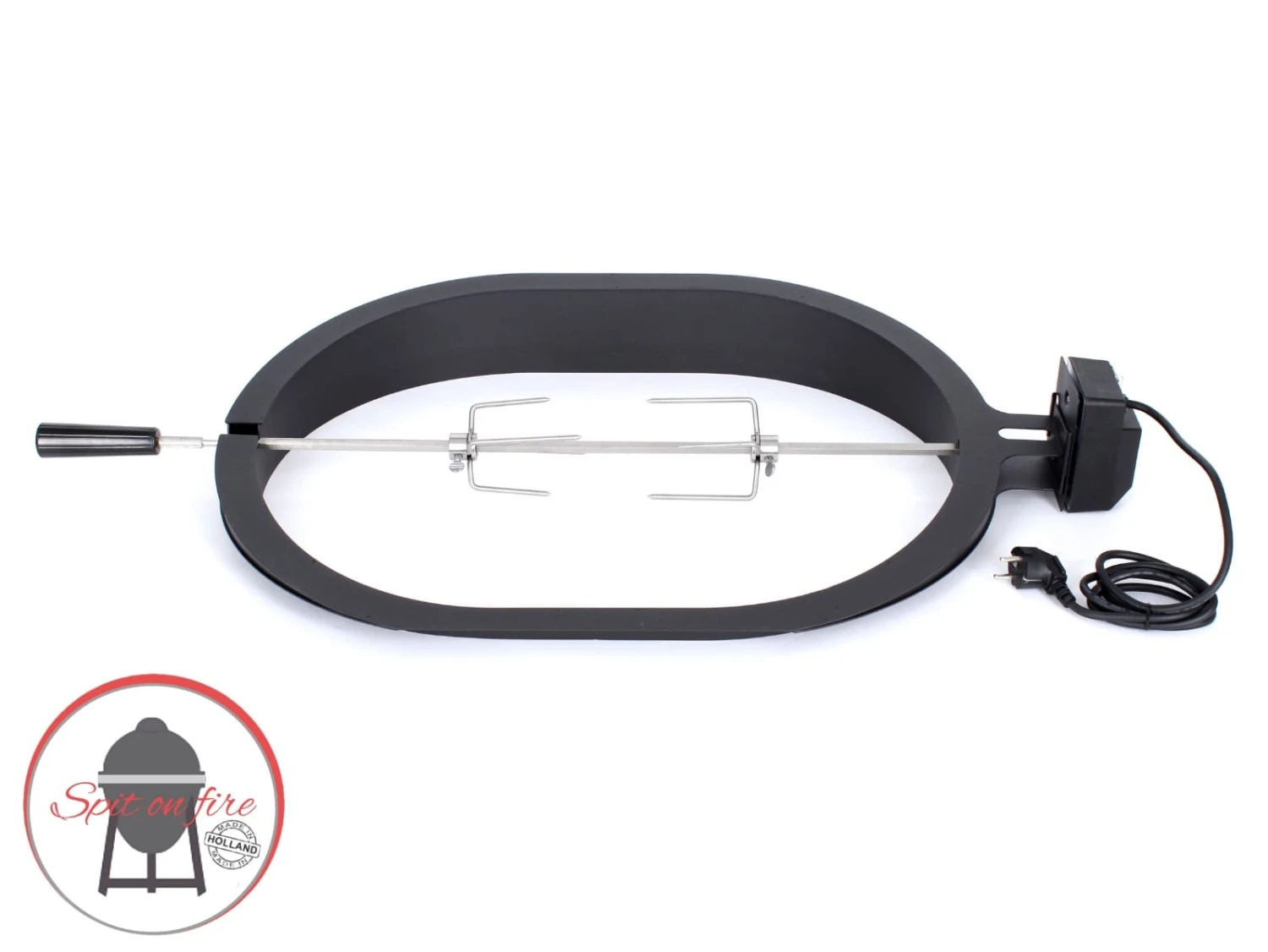 Spit on Fire is een universele rotisserie bestaande uit een RVS Spit en een 4 Watt krachtige elektrische motor. De Spit en de motor zijn geruisloos. En uitermate geschikt voor het grillen van kip, hoenderen, kalkoen of bijvoorbeeld Argentijnse Picanha steaks.