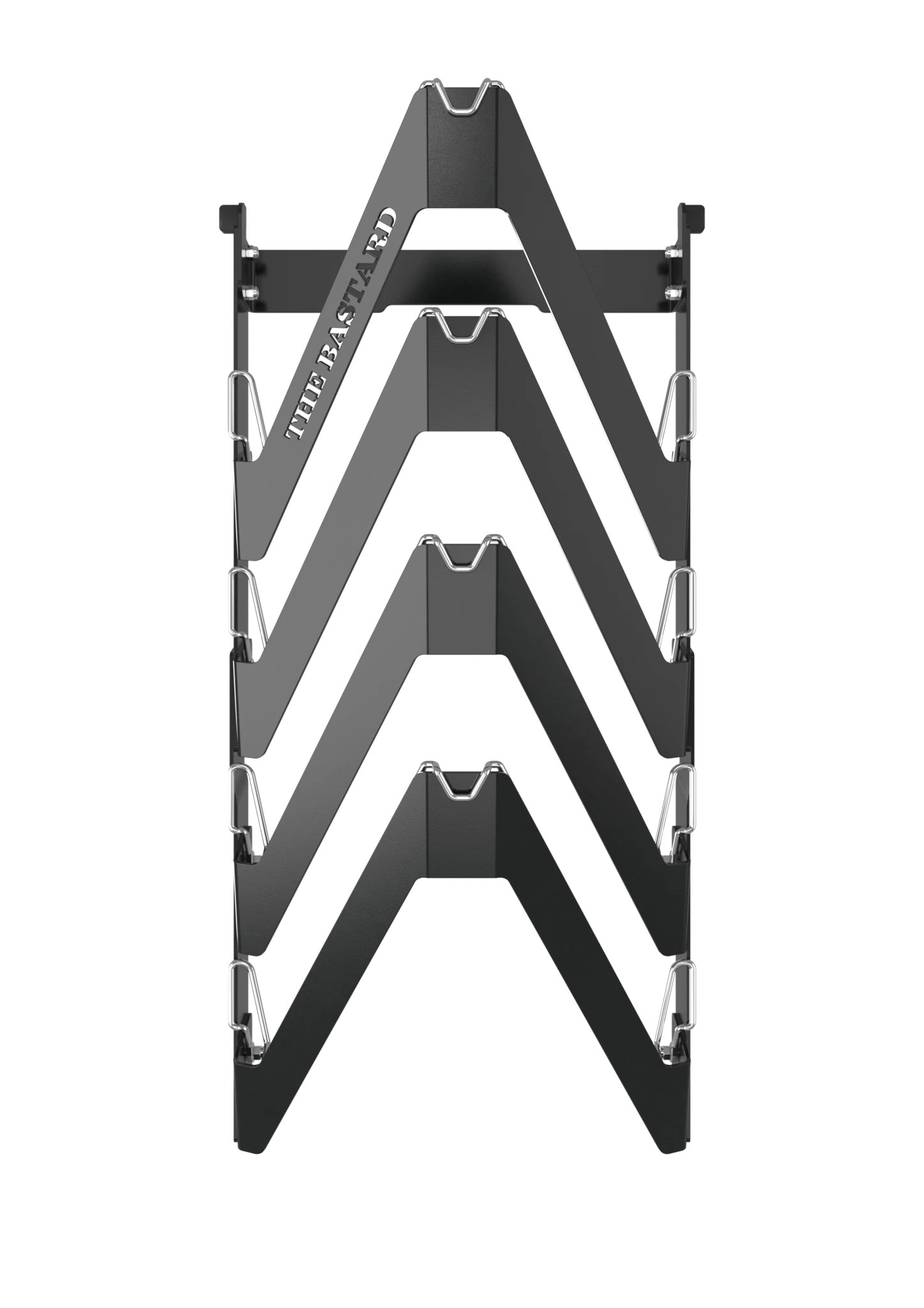 Het in gebruik nemen van je Bastard Essentials Rack is snel en eenvoudig. Je hoeft hier bijna niets voor te doen, behalve de zijtafels van je Bastard te halen en het rek op hieraan op te hangen.